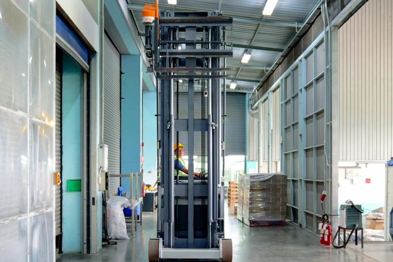 2) O 4 unidades de VNA de 3 vias tipo homem-sentado As empilhadeiras estão equipadas com 3 -garfos elétricos de duas vias que pode girar 180 ° Isso permite operações de carga, descarga e empilhamento em três direções. sem a necessidade de virar o veículo no corredor , simplificando bastante o processo operacional, reduzir o tempo por operação, e melhorando a eficiência do cumprimento dos pedidos.