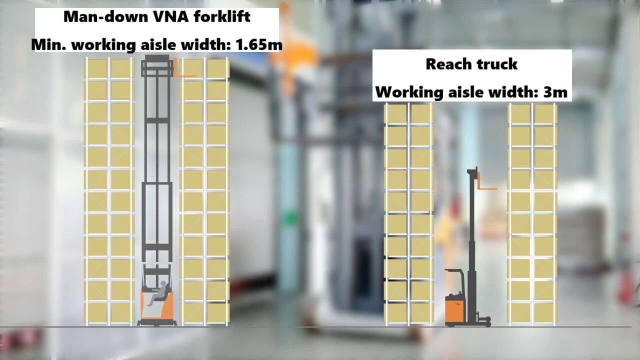 Os clientes têm necessidades frequentes de armazenagem e expedição de mercadorias. As empilhadeiras retráteis exigem várias manobras para concluir as operações de armazenagem e recuperação de mercadorias e acoplagem aos locais de armazenamento, o que leva muito tempo.