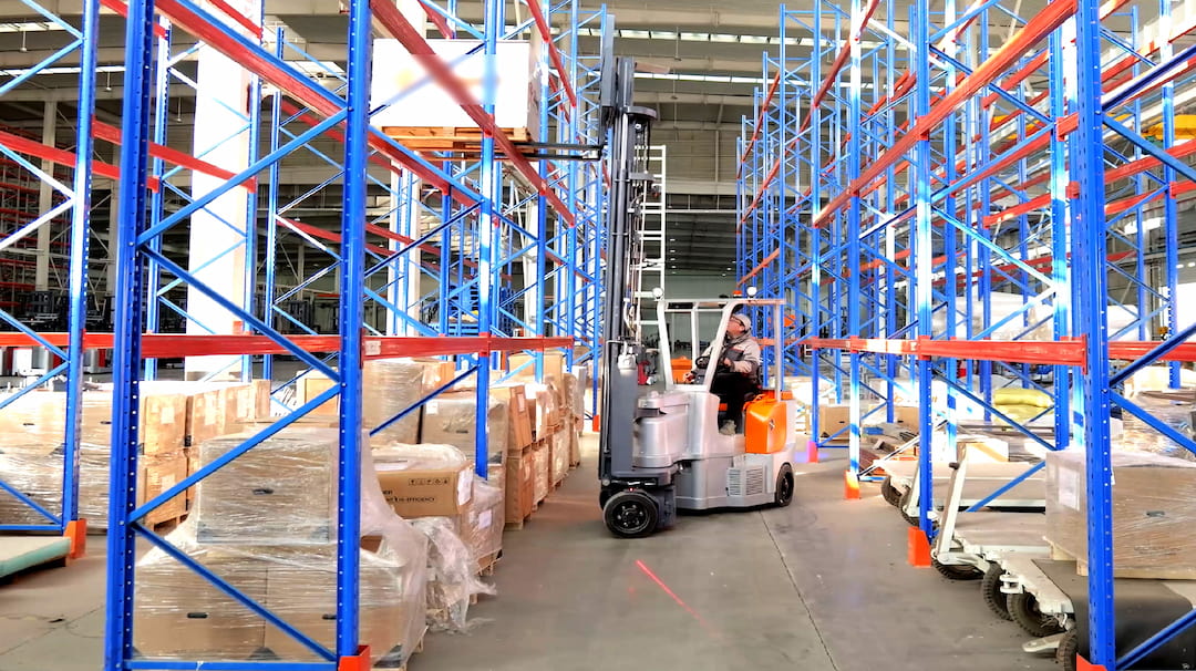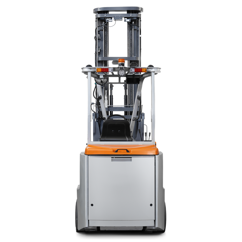 A capacidade de carga nominal é de 2,0 toneladas, a altura máxima de elevação é de 12,5 metros e o método especial de direção do pórtico torna a empilhadeira da série JSH mais flexível ao trabalhar em corredores estreitos. O corredor de trabalho mínimo requer apenas 2 metros, otimizando o espaço para os gestores de armazém.