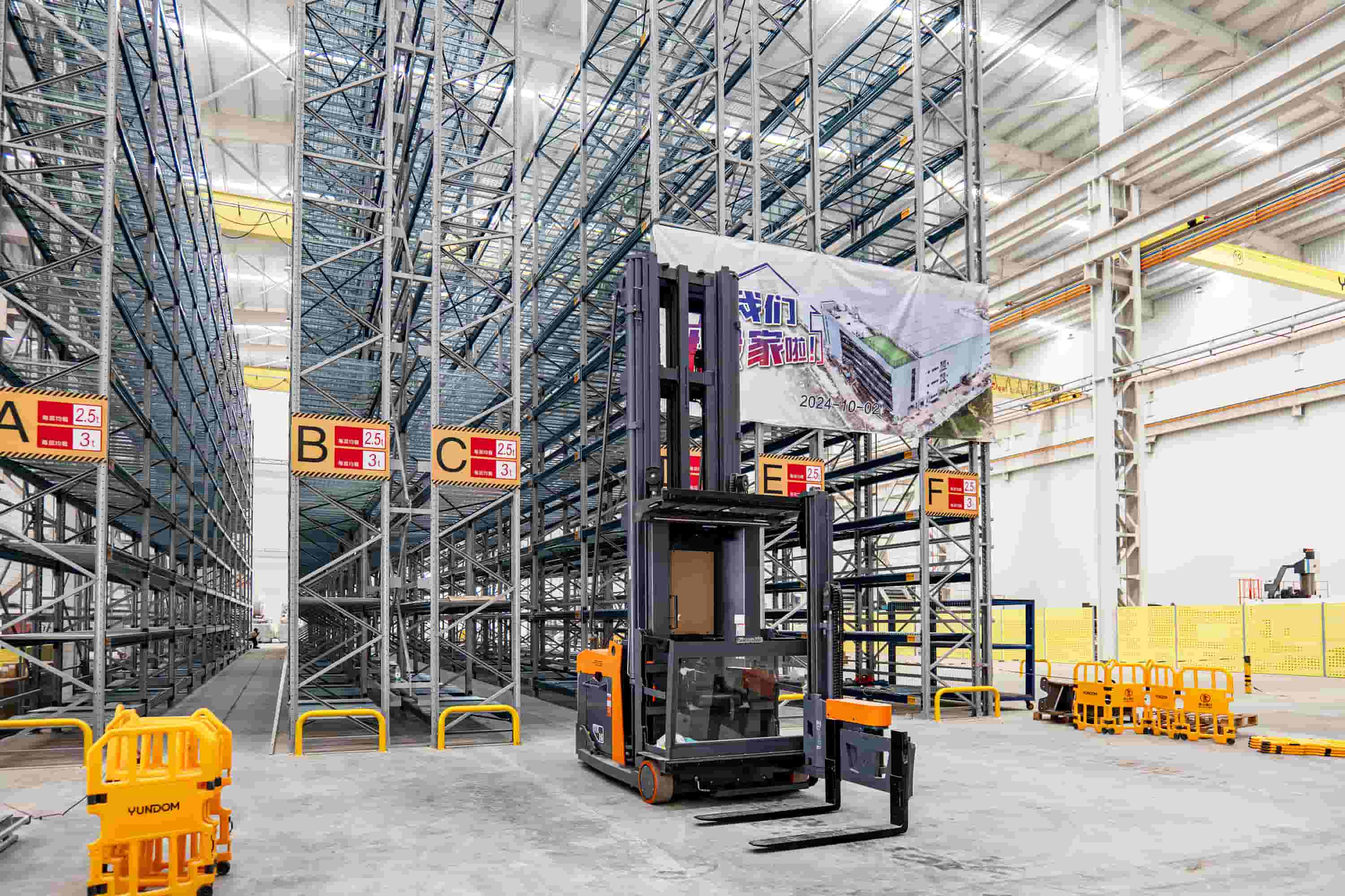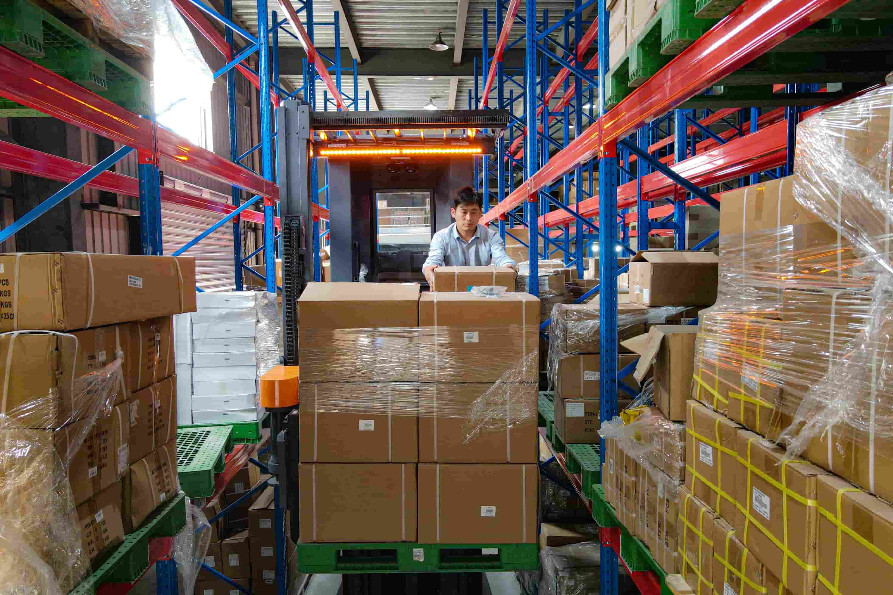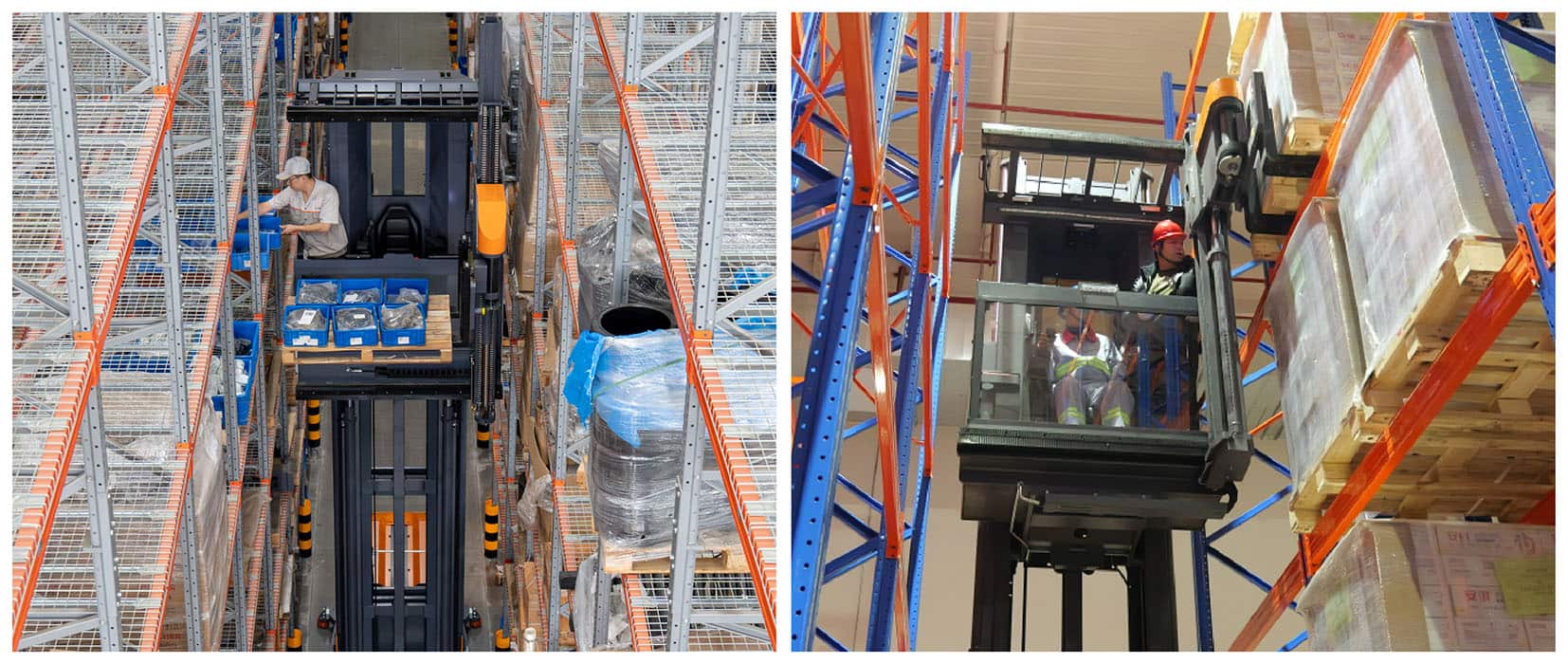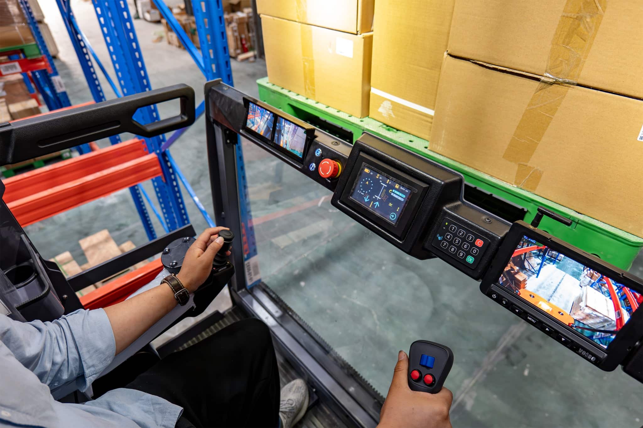 A empilhadeira VUE de três vias é uma empilhadeira para corredores estreitos que combina funções de empilhamento e picking. Sua alta capacidade de carga garante a estabilidade e a segurança do veículo durante trabalhos em altura.