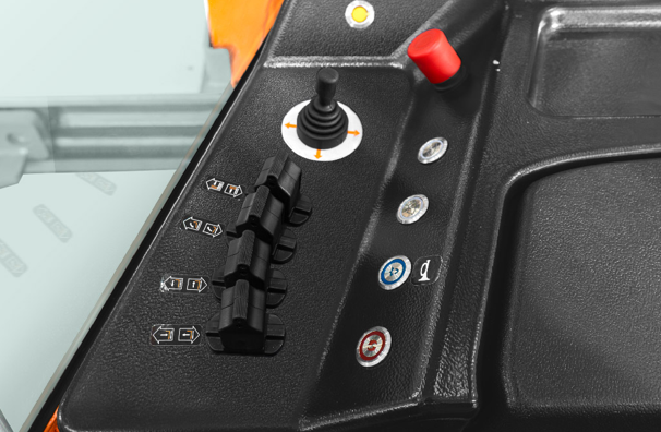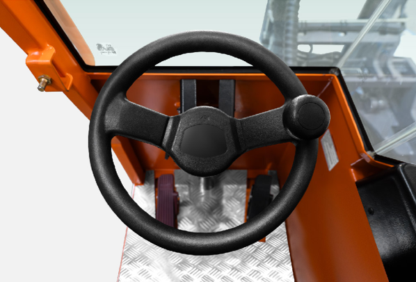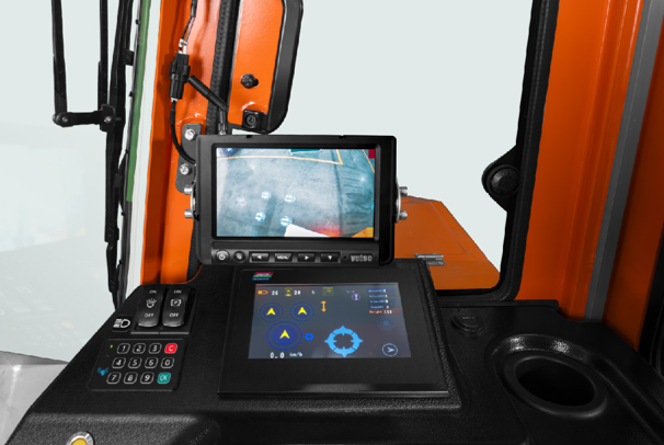 A capacidade de carga é de 5 toneladas e a altura de elevação varia de 3 a 10 metros, com 3 modos de condução: para frente/para trás, lateral e giro de 360° no próprio eixo.